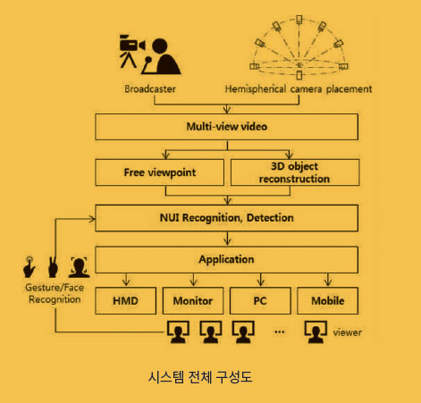 ② 웹 스트리밍 기술(Real time, Non real time for VOD) : 실시간 서비스 또는 VOD와 같은 비실시간 서비스 플랫폼 구성을 통한 다시점디스플레이 기반의 실시간 스트리밍이 가능
