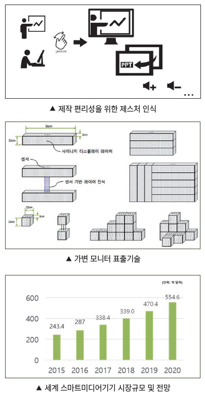• 세계 스마트 미디어 기기 시장규모는 2015년 243.4억 달러로 연평균 30.8%(2013~2015기준)씩 성장하여 2020년에는 554.6억 달러에 이를 것으로 전망