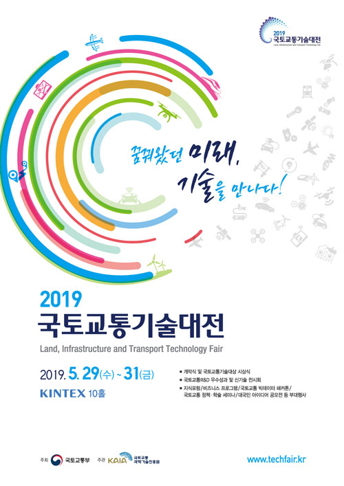 국토교통부(장관 김현미)가 주최하고 국토교통과학기술진흥원(원장 손봉수, 이하 국토진흥원)이 주관하는 이번 행사는 ‘꿈꿔왔던 미래, 기술을 만나다!’라는 주제로 5월 29일(수)부터 31일(금)까지 3일간 일산 킨텍스 10홀에서 개최된다.