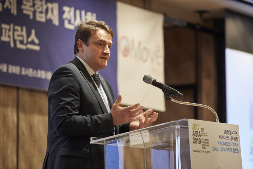 JEC 그룹 에릭 피에르쟝 대표는 "다양한 분야에서 이미 복합소재 사용 중이며, 한국에서 복합소재 분야 활동이 두드러지고 있다. 앞으로 복합소재의 잠재력을 보여줄 분야가 모빌리티이다. 특히 자동차 분야는 역사상 가장 큰 도전에 직면해 있다. 모빌리티 업계는 복합재료가 자동차가 가진 문제점을 해결할 열쇠로 주목하고 있다. 앞으로는 단순한 부품뿐 아니라 자동차 전체를 이루는 시스템을 복합재료로 구성 가능하게 될 것이다." 라고 전했다.