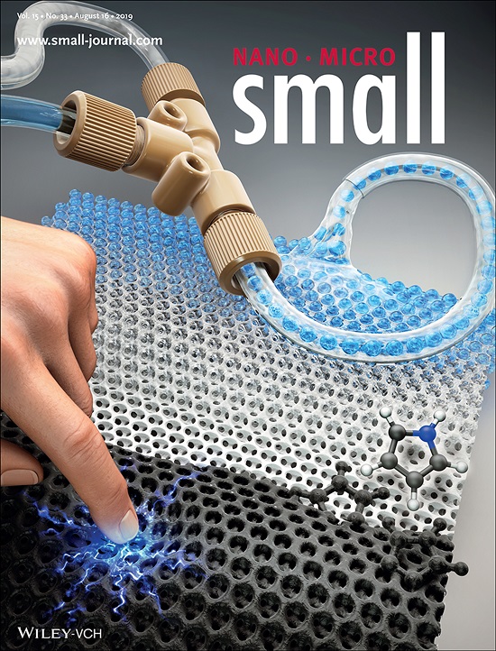 오진원 석사가 1 저자로 참여한 이번 연구결과는 국제학술지 ‘스몰(Small)’ 8월 16일 자 표지논문에 게재됐다. (논문명 : Highly Uniform and Low Hysteresis Piezoresistive Pressure Sensors based on Chemical Grafting of Polypyrrole on Elastomer Template with Uniform Pore Size)