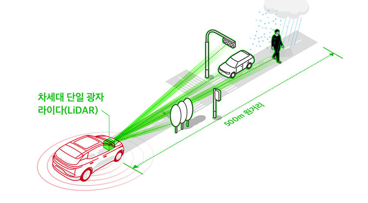 라이다는 레이저를 목표물에 비춰 사물과의 거리 및 다양한 물성을 감지하고 이를 3D 영상으로 모델링할 수 있는 기술로, 자율주행차의 눈 역할을 하는 것은 물론 향후 다양한 분야에 널리 쓰일 것으로 예상된다.