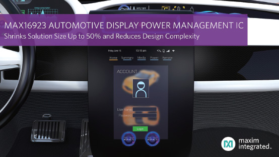 자동차 디스플레이 전력 솔루션 MAX16923은 4개 파워레일과 함께 높은 집적성을 제공한다. 하나의 IC에 고전압 저전압 벅 컨버터, 고전압 저전압 LDO, 전자파간섭(EMI) 완화, 워치독 타이머를 탑재했다.
