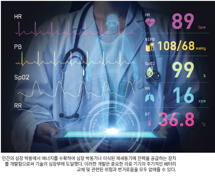 에너지 하베스팅 기술이 거의 모든 곳에서 녹색 에너지를 약속함에 따라 연구자들은 새로운 애플리케이션 가능성을 바쁘게 탐색하고 있다. 일례로 미시건 대학 과학자들은 인간의 심장 박동에서 에너지를 수확하여 심장 박동기나 이식된 제세동기에 전력을 공급하는 장치를 개발함으로써 기술의 심장부에 도달했다. 이러한 개발은 중요한 의료 기기의 주기적인 배터리 교체 및 관련된 위험과 번거로움을 모두 없애줄 수 있다.