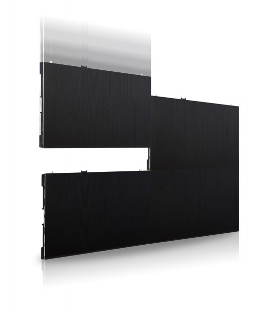 LG LED 사이니지 신제품은 가로 600mm, 세로 337.5mm, 두께 44.9mm 크기의 LED 캐비닛(LED 소자가 박힌 LED 사이니지의 기본 구성단위)을 레고 블록처럼 간편하게 이어 붙일 수 있어 대강당, 로비, 회의실 등 다양한 상업용 공간에 맞춰 설치할 수 있다.