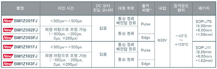 백색가전에서 사양에 따라 구별하여 사용하는 Pulse 파형과 Edge 파형의 2종류에 대응하여, 기존의 제로 크로스 검출 회로를 대체하여 사용하는 경우에도 소프트웨어의 변경이 필요하지 않다. 모든 백색가전에 대응 가능한 6종류의 제품을 구비하고 있다.