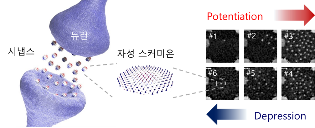 스커미온은 소용돌이 모양으로 스핀들이 배열되어 형성되는 스핀구조체이다. 스커미온은 각각 고유한 전기 저항을 가져, 스커미온 개수에 따른 저항 변화를 아날로그적으로 조절하고 측정할 수 있다. 이런 우수한 특성으로 인해 스커미온 기반의 인공 시냅스 소자를 개발에 대한 관심이 높았으나, 스커미온을 전기적으로 제어하는 기술적 어려움이 있었다.