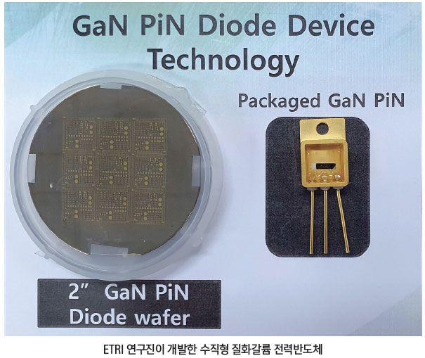 한국전자통신연구원(ETRI)은 고전압에서 좋은 성능을 발휘하는 동시에 전력 손실을 최소화하는 수직형 질화갈륨 전력반도체 핵심기술을 개발했다고 밝혔다. 이번에 개발된 ‘질화갈륨(GaN) 단결정 기판을 이용한 800V급 수직형 전력반도체 기술’은 향후 에너지 효율 개선 및 소재·부품·장비 국산화에 큰 도움이 될 전망이다.