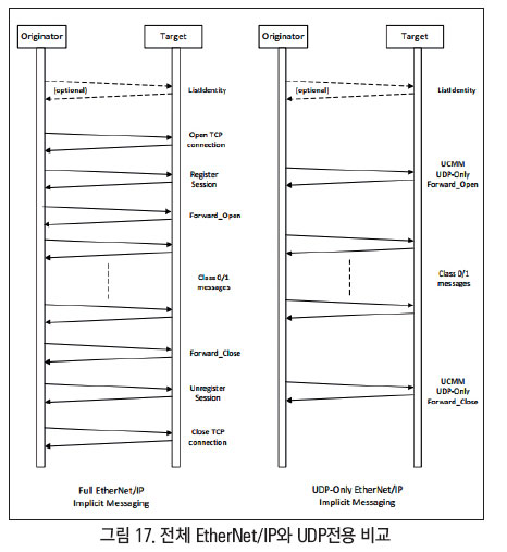 그림 17은 전체 EtherNet/IP와 UDP전용 암시적 메시징을 비교한 것이다.