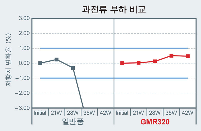 새롭게 개발한 GMR320은 자동차의 엔진 ECU 및 헤드램프, 산업기기 및 백색가전용 전원이나 모터 등에 최적인 정격전력 10W, 저항치 5mΩ~100mΩ을 라인업으로 구비했다.