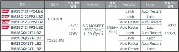 로옴(ROHM) 주식회사는 대전력을 취급하는 범용 인버터 및 AC 서보, 산업용 에어컨, 가로등과 같은 산업기기용으로, 1700V 내압 SiC MOSFET 내장 AC/DC 컨버터 IC「BM2SC12xFP2-LBZ」를 개발했다.
