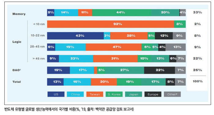 미국은 설계 및 첨단패키징 분야에서 최고 역량을 보유하고 있지만 제조 및 단순 패키징 분야는 약하다. 핵심 검토품목은 로직, 메모리, 아날로그 반도체 등이며 설계-제조-조립 및 패키징 단계에 초점을 맞추었다.
