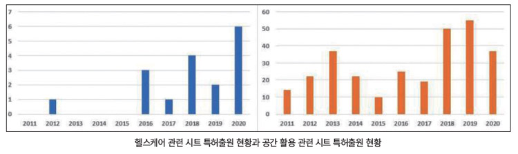 특허청에 따르면, 안전 등 기능 향상 좌석 출원이 1,576건(84%), 차내 공간 활용 관련 좌석 출원이 291건(15%), 탑승자 신체 진단 등 건강관리 관련 좌석 출원이 17건(1%) 순으로 조사되었다. 좌석 기술의 최근 큰 변화는 차량 내에서 휴식을 취하거나 회의를 하는 등 자동차를 휴식?업무 공간으로 활용하기 위한 특허출원이 2018년부터 급증하기 시작한 것이다.