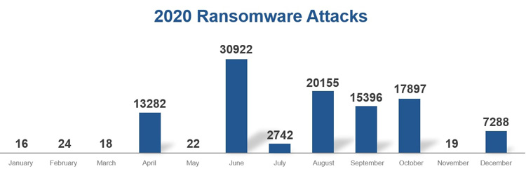 둘째, 금전적 이득이 주요 사이버 범죄의 동기가 되었으며, 랜섬웨어 배포는 6월부터 급격히 증가했다. 이러한 트렌드는 모든 업계에 영향을 미쳤지만 의료 업계가 가장 큰 타격을 입었다. 59%의 랜섬웨어 공격이 2020년 하반기에 발생했다.