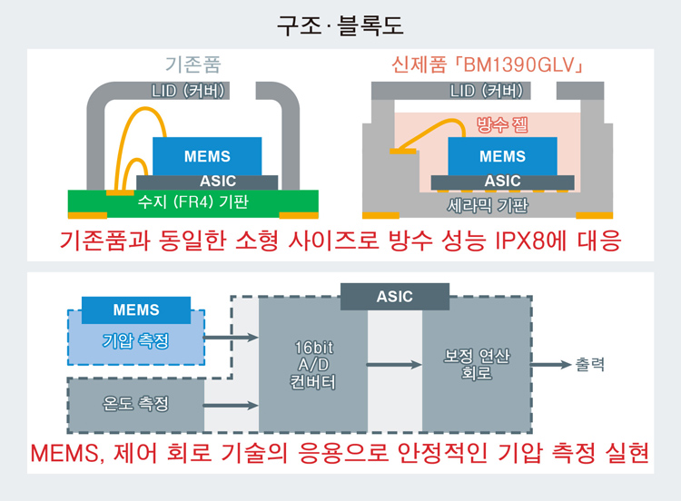 일반적인 충전 제어 IC는 충전 전압이 고정되어 있지만, 본 제품은 외장 저항기를 변경하는 것만으로 간단하게 충전 전압을 설정할 수 있어, 배터리 변경 시의 설계 공수 삭감에 기여한다. 또한, 독자적인 패키지 기술을 채용하여 0.4mm 두께의 박형 패키지 (일반품 대비 60% 저감)를 실현함으로써, 기기의 소형 박형화에 기여한다. 그리고, CCCV충전 시 각 충전 특성(충전 전류, 종지 (終止) 전류) 등의 설정이 가능하므로 신형 2차전지를 탑재하는 웨어러블 기기 및 소형, 박형 IoT 기기에 최적인 충전 환경을 제공할 수 있다.