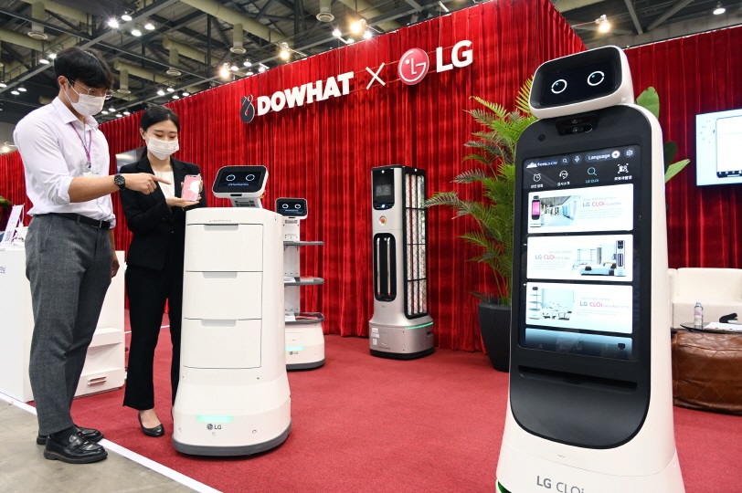 LG전자가 ‘2021 호텔쇼’에서 LG 클로이 로봇 솔루션을 소개했다.