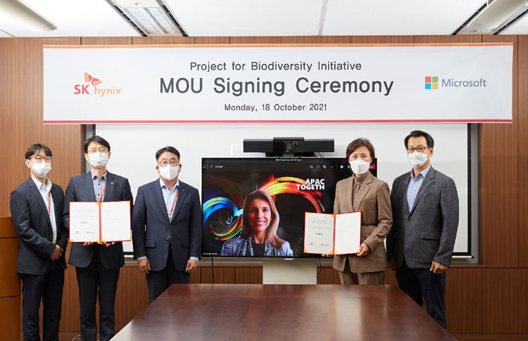 18일 오후 화상으로 진행된 협약식에는 안드레아 델라 마테아(Andrea Della Mattea) 마이크로소프트 아시아 태평양 지역 사장, 이지은 한국마이크로소프트 대표, 김동섭 SK하이닉스 대외협력총괄 사장, 김윤욱 지속경영담당 부사장 등이 참석했다.