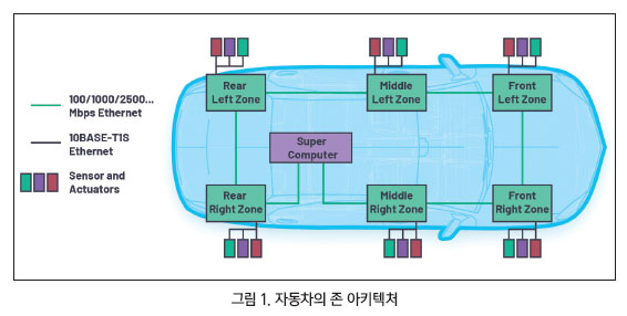 존 아키텍처가 진화함에 따라 이 새로운 아키텍처를 지원하기 위해 에지 센서와 액추에이터에 이르기까지 이더넷 커넥티비티가 필요해졌다. 플렉스레이(FlexRay)나 CAN 같은 기존의 레거시 커넥티비티 기술은 게이트웨이로 프로토콜 변환을 구현해야 하므로 비용, 복잡성, 지연 시간을 증가시킨다.