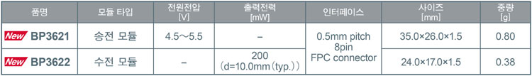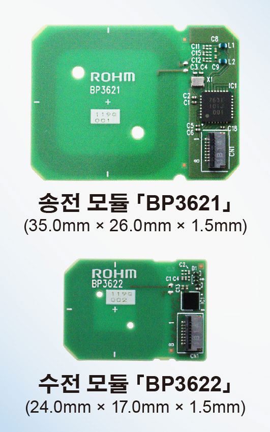 로옴(ROHM) 주식회사는 스마트 태그, 스마트 카드 등의 소형 기기 및 PC 주변 기기 등에서 무선 충전 기능 실현이 용이한 안테나 기판 일체형 소형 무선 충전 모듈 「BP3621 (송전 모듈)」「BP3622 (수전 모듈)」을 개발했다.