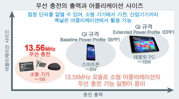 최근, 스마트폰, 스마트 워치 등 폭넓은 어플리케이션에서 접점 (接点) 단자를 없애고, 방수 • 방진 성능을 높일 수 있는 무선 충전 기능의 도입이 가속화되고 있다. 그러나, 기존의 무선 충전 규격은 주파수가 낮아, 규격에 준거하기 위해서는 안테나의 소형화에 한계가 있으므로, 더 범용적으로 소형 기기에서 이용 가능한 규격 및 방식에 대한 요구가 높아지고 있다.