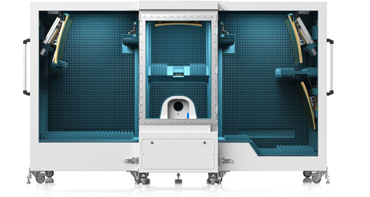 R&S ATS1800M은 기존의 ATS1800C 솔루션에서 2개의 측면 챔버를 추가하는 구성으로 다중 AoA(Angles of Arrival) 및 RRM(Radio Resource Management) 시험을 지원한다. R&S ATS1800M은 4개의 CATR 반사판을 갖추고 있으며, 이를 통해 5G NR 밀리미터 주파수 지원 기기에서 요구되는 완전한 3GPP 적합성 테스트를 수행할 수 있는 유일한 단일 시스템 솔루션이다.
