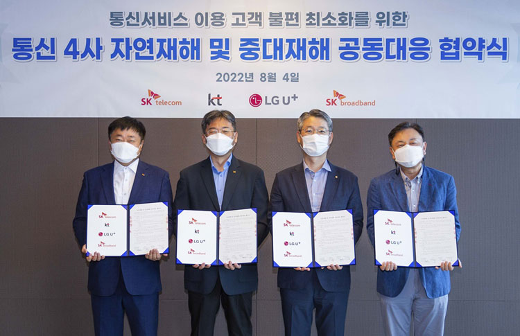 SK텔레콤, SK브로드밴드, KT, LG유플러스 등 통신 4사는 자연재해로 인한 통신 서비스 복구, 예방에 공동으로 대응하는 업무협약을 체결했다고 밝혔다.