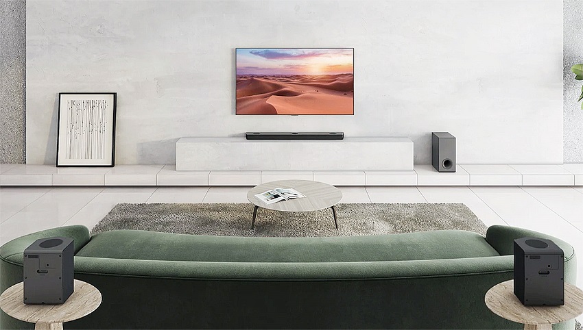 업파이어링 스피커는 사운드를 위로 보내 머리 위에서 사운드가 들리는 효과를 내 입체음향을 구현하는데 중요한 역할을 담당한다. 이 제품은 전작보다 서브우퍼 크기도 14% 키워 중저음을 강화했고, 리어스피커 내에 탑재된 전면향 스피커도 2개 늘린 총 4개를 배치해 고객에게 다양한 각도에서 풍성한 사운드를 들려준다. LG사운드바 중 최다 채널(9.1.5)을 갖췄고 최대출력은 810와트(W)다.