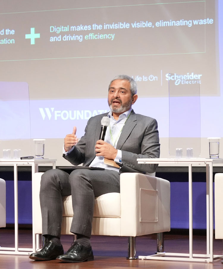 매니시 팬트(Manish Pant) 슈나이더 일렉트릭 동아시아•일본 총괄 사장는 ‘기후 기술(Climate Technology)’ 세션에 참석해 ’기후 변화를 위한 기술: 전기4.0 (Technology for Climate change: Electricity 4.0)’를 주제로 넷 제로(Net-Zero) 실현을 위해 기업들 나아가야할 방향과 이를 위한 솔루션 활용 방안을 발표했다.