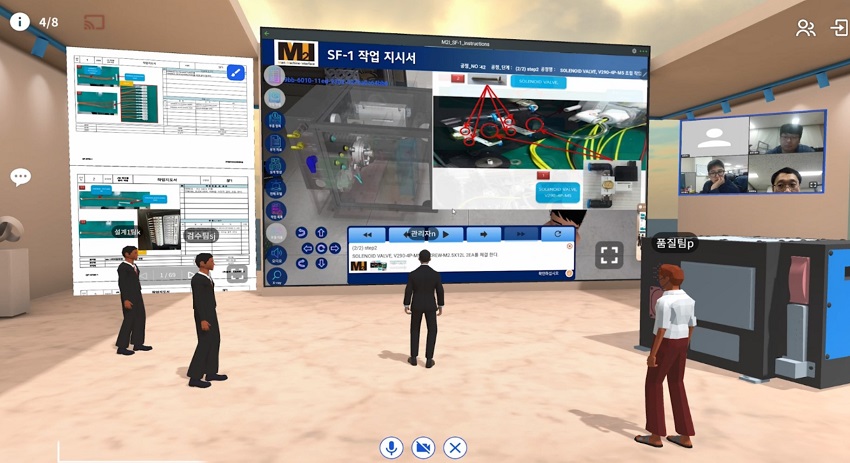 실제로 생산부분의 SF1 생산자동소화장치 업무는 100여종의 부품을 340*245*245mm의 좁은 함체내에 정해진 순서대로 부품을 배치시키고 복잡한 배선 작업을 필요로 하는 작업으로 숙련자도 1일 기준으로 소량의 제품만3~4대 정도만 생산이 가능할 정도로 업무 난이도가 매우 높은 작업이다. 이를 해결하기 위해 제품의 3D 도면을 최적화하고 AR 공간에 디지털화 한 후 작업지시서와 도면을 MX스페이스에 구현해 제공한다. 시공간에 관계 없이 실시간 다자간 업무협의가 가능해 업무 효율화를 극대화 할 수 있다.