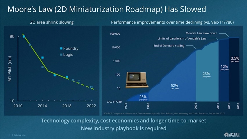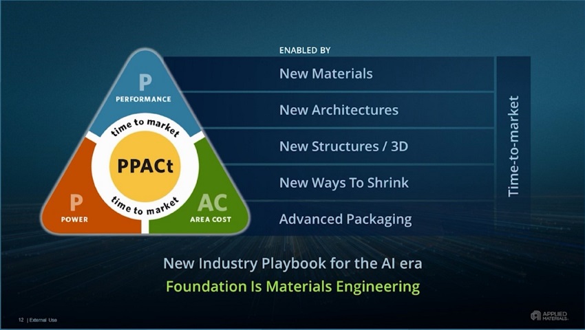 어플라이드의 새로운 PPACt(성능·전력·크기·비용·시장·출시·기간) 플레이북은 새로운 재료, 새로운 아키텍처, 3D 장치를 위한 새로운 구조, 새로운 축소 방식, 첨단 패키징으로 구현될 수 있다. 경제적 가치를 포착하는 데 가장 중요한 문자 t는 타임 투 마켓, 즉 시장 출시에 걸리는 기간을 단축하는 것이다.