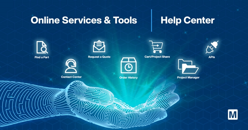 도움말 센터와 서비스 및 도구는 데이터 시트 요청, 주문 확인 및 추적, API 또는 EDI를 활용한 신규 주문과 기술 지원을 제공한다.