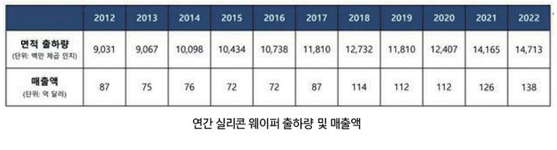 2022년 전 세계 실리콘 웨이퍼 출하량은 역대 최고