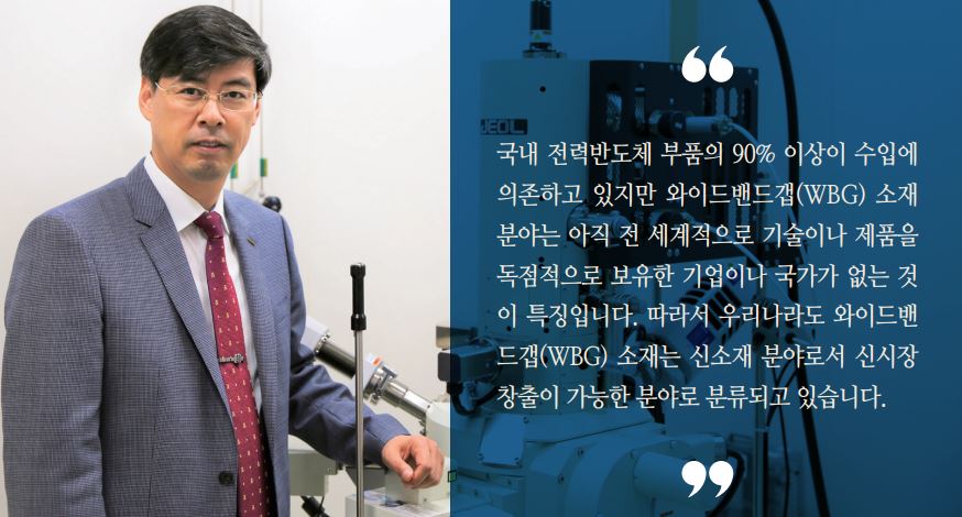 Q.  국내외에서도 차세대 반도체인 SiC(탄화규소) 전력반도체의 수요가 확대되고 상용화가 활발해지고 있습니다. 말씀하신 것처럼 SiC 뿐만 아니라 GaN, Ga₂O₃ 등 와이드 밴드갭(Wide Bandgap) 전력반도체까지 연구, 상용화되고 있습니다. 이렇게 전력반도체를 중요하게 생각해야하는 이유가 무엇인지요.