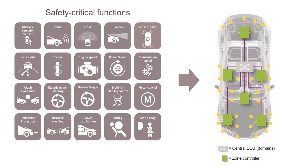 차세대 자동차에 탑재되는 도메인 및 영역 컨트롤러는 안전 기능을 통합하고 방대한 데이터를 실시간으로 처리해야 한다.