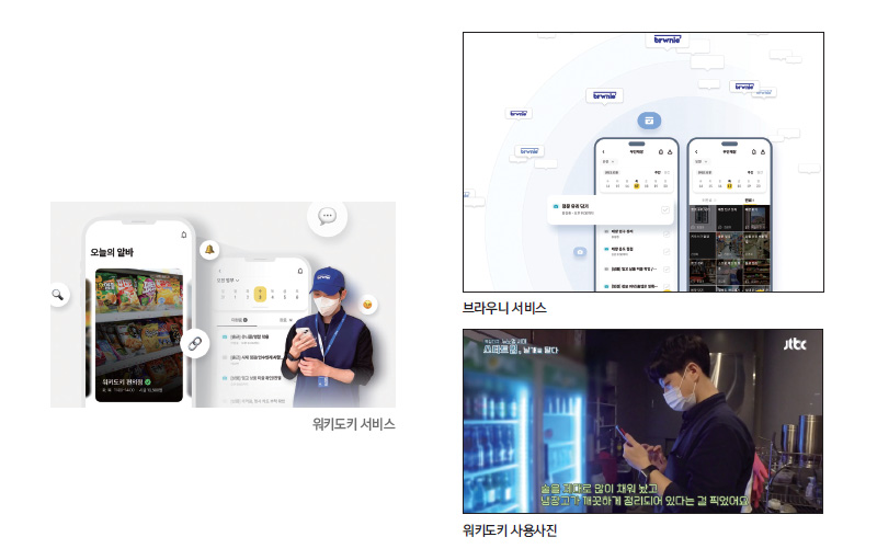 오프라인 매장관리를 위해 IT기술을 활용한 플랫폼인 ‘워키도키’와 이를 기반으로 긱워커를 활용한 무인매장 정기관리 ‘브라우니’ 서비스이다.