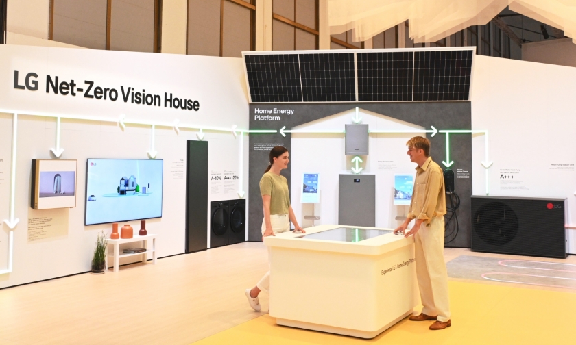 넷제로 비전 하우스 전시존에서도 LG 씽큐를 만날 수 있다. 고효율 가전의 제어는 물론 가정에서 사용하는 에너지를 효율적으로 모니터링하고 에너지 절약에 기여할 수 있는 ‘홈 에너지 플랫폼’을 체험할 수 있도록 준비했다.