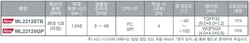 ML22120xx는 9월부터 월 10만 개 생산 체제로 양산되고 있다. ML22120TB 및 평가 보드는 Chip 1 Stop, CoreStaff 등 온라인 부품 유통 사이트에서도 구매할 수 있다.