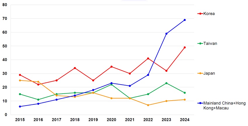ISSCC 연도별 아시아 주요 국가 논문 채택 현황 [출처=ISSCC]