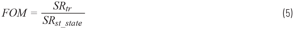 위에서 보듯이, FOM(figure-of-merit)은 시스템 성능을 나타내는 아주 좋은 지표이고, 대개는 FOM을 극대화하는 것이 최적의 절충을 이루는 좋은 방법이다9,10. 하지만 높은 FOM만으로는 특정 애플리케이션에서 모든 파라미터가 만족스러울 것이라고 보장할 수 없다. 높은 FOM은 좋은 설계라는 것을 알려줄 뿐이다. FOM은 공식 5와 같이 정의할 수 있는데, 이 공식은 D < 1/Nph에 사용하기에 적합하다. 그러므로 TLVR의 FOM은 공식 6과 같이 표현할 수 있다.