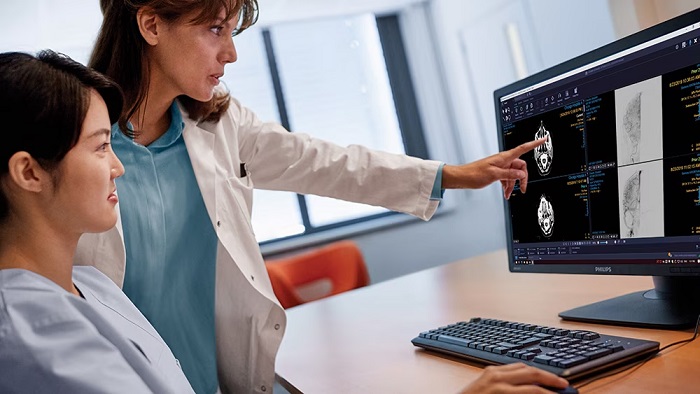 예를 들어, 진단 영상 분야에서 AI를 CT 시스템에 통합하면 방사선사가 가장 많은 시간을 소비하는 단계를 자동화하여 환자에게 더 많은 시간을 집중할 수 있다. 그런 다음 AI 기반 재구성을 통해 방사선 전문의가 정확한 진단을 내리는 데 필요한 고품질 영상을 제공할 수 있다. 또한, AI는 심장의 완전한 3D 정량화 및 모델링과 기타 자동화된 측정을 통해 심장 초음파의 복잡성을 제거할 수 있다. 이를 통해 초음파 전문의는 올바른 방식으로 영상을 획득하고 분석할 수 있으며, 임상의는 더 효과적이고 효율적인 심장 치료를 할 수 있다.