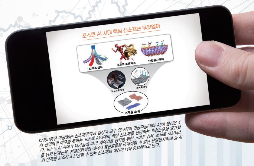 KAIST(총장 이광형)는 신소재공학과 김상욱 교수 연구팀이 인공지능(이하 AI)이 불러온 4차 산업혁명 이후를 뜻하는 포스트 AI시대의 핵심 신소재를 전망하는 초청논문을 발표했다.