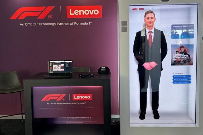 더불어 미국 텍사스주 오스틴에서 열린 ‘F1® 레노버 미국 그랑프리 2023’에 F1(포뮬러 1) 공식 파트너사로 참여한 레노버는 ‘레노버 씽크엣지(ThinkEdge) 아바타 F1’ 경험을 선보이며 행사에 풍성함을 더했다. 레노버가 보유한 최첨단 인프라 및 씽크엣지 제품군에 딥브레인AI의 소프트웨어를 통합한 풀 사이즈급 키오스크 아바타는 F1 관련 정보, 통계, 레노버와의 파트너십, F1 패독 클럽(F1 Paddock Club™) 등 참관객들의 질문에 답하며 ‘가능성의 예술(Art of the Possible)’을 구현해냈다.