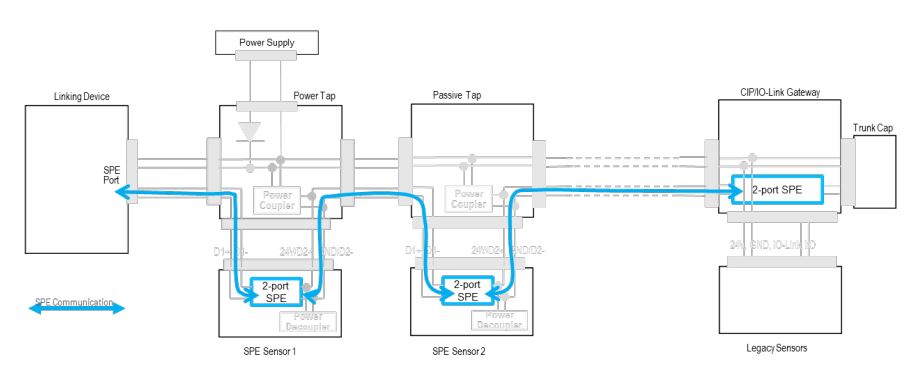 그림 8에서 볼 수 있듯이 SPE 센서는 SPE에서 선형 토폴로지로 연결된다.