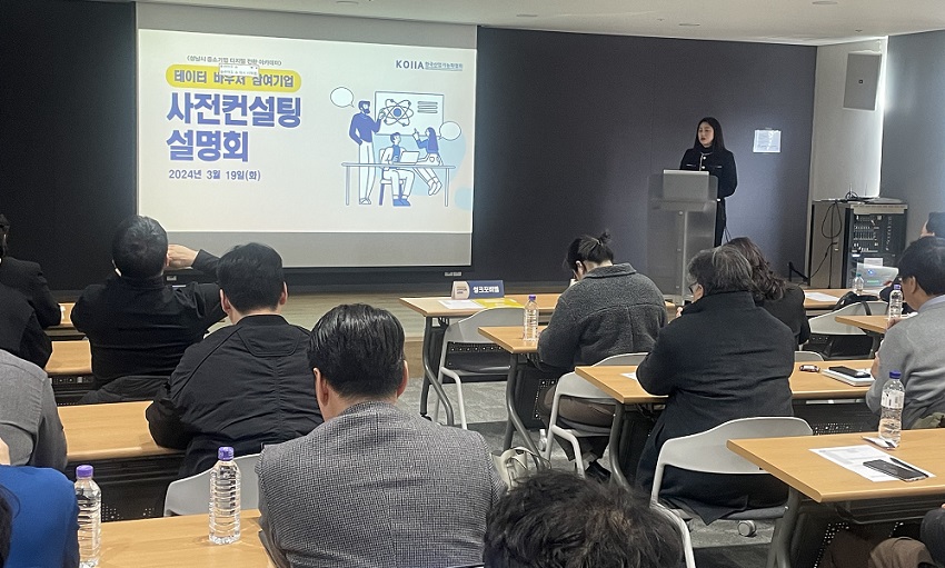 사업설명회에서는 발표하는 KOIIA 박보경 대리설명회는 실제 데이터를 활용한 중소·중견기업의 혁신사례와 함께 데이터바우처 사업의 참여를 희망하는 중소기업을 위한 자사의 데이터 활용방안, 사업계획서 작성 및 참여방법 등이 안내되었다.