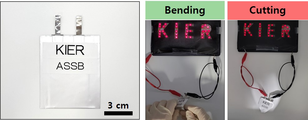 이에 최근, 국내 연구진이 상온에서도 높은 이온전도성을 가진 전고체 전지용 복합 고체전해질 개발에 성공하여 주목을 받았다. 이 주인공은 바로 한국에너지기술연구원(원장 이창근) 에너지저장연구단 장보윤 박사 연구진이다. 연구진은 전고체 전지에 복합 고체전해질을 적용하여 310Wh/kg의 높은 에너지밀도 성능을 구현했다. 특히 구부리거나 자르는 극한 상황에서도 전지가 안정적으로 작동되는 우수한 내구성까지 증명했다.