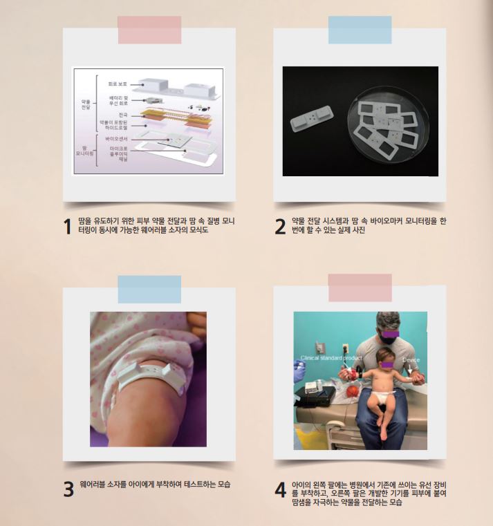 KIST 김주희 박사는 “Northwestern University와 2년간 공동 연구를 통해 달성한 성과로 땀 모니터링 디바이스 개발에 있어 기존의 땀 유도 방식의 한계를 해결했을 뿐 아니라, 임상 연구에도 성공함으로써 상용화에 한 걸음 더 가까워진 연구 성과”라고 연구의 의의를 밝혔다. Northwestern University John A. Rogers 교수는 “앞으로 성인을 포함한 대규모 임상 연구 및 상용화를 위한 후속 연구를 진행할 계획”이라고 말했다.