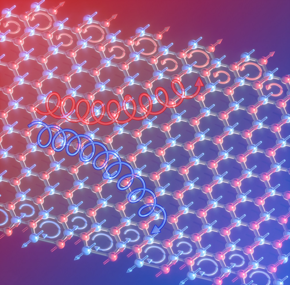 KAIST 물리학과 김세권 교수 연구팀은 MnPS3(삼황화린망간)와 같이 벌집 격자를 이루는 2차원 반강자성체에서 강한 마그논 오비탈 홀 효과가 나타난다는 것을 세계 최초로 발견했다.