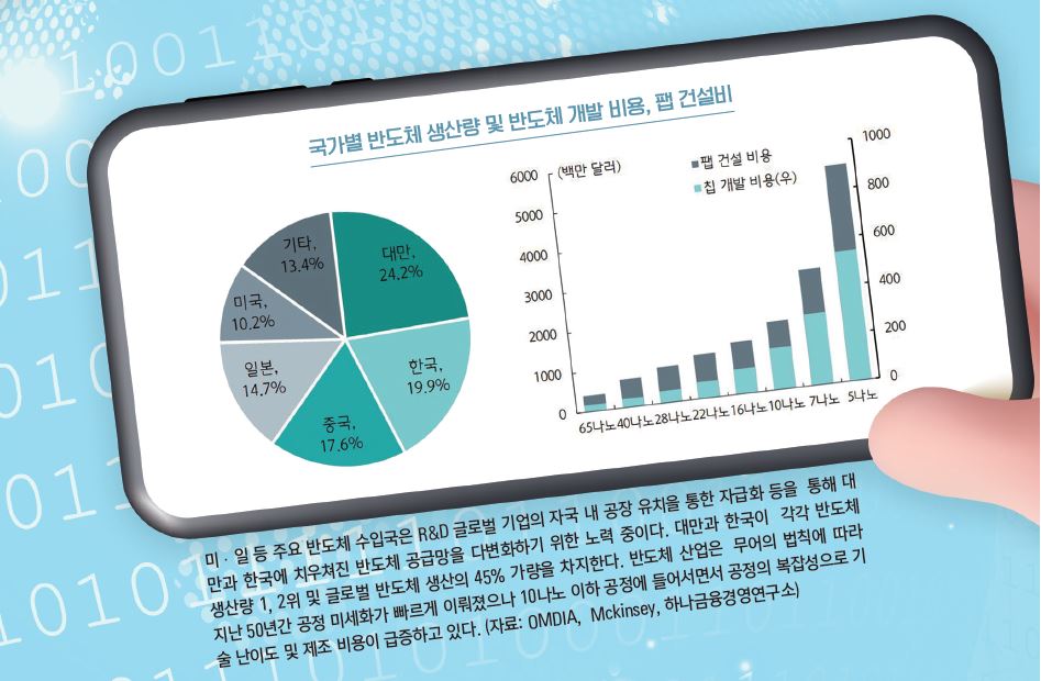 미일 등 주요 반도체 수입국은 R&D 글로벌 기업의 자국 내 공장 유치을 통한 자급화 등을 통해 대만과 한국에 치우쳐진 반도체 공급망을 다변화하기 위한 노력 중이다. 대만과 한국이 각각 반도체 생산량 1, 2위 및 글로벌 반도체 생산의 45% 가량을 차지한다.