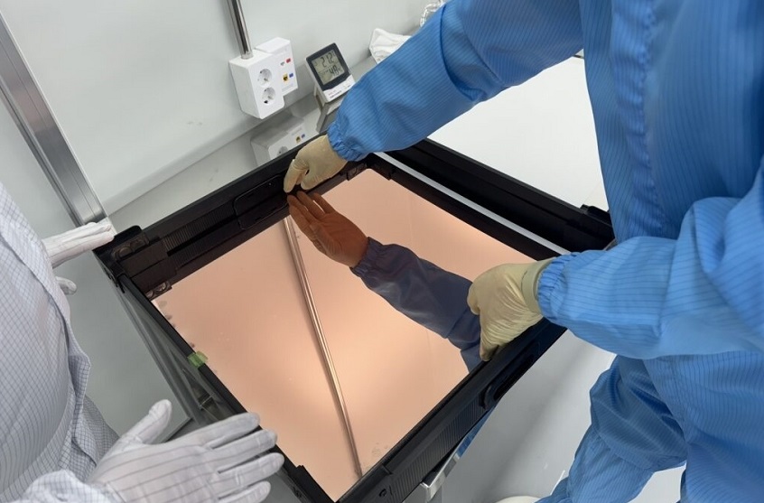 고성능 반도체 유리기판 제조 기업 에프앤에스전자(FNS전자, 대표 최병철?신재호)가 양산된 유리기판을 16일 첫 출하해 앱솔릭스(Absolics)에 수출한다고 밝혔다. 에프앤에스전자는 인천 송도 본사에서 최병철, 신재호 대표와 오준록 앱솔릭스 대표가 참석한 가운데 첫 출하 및 수출 기념식을 진행했다.