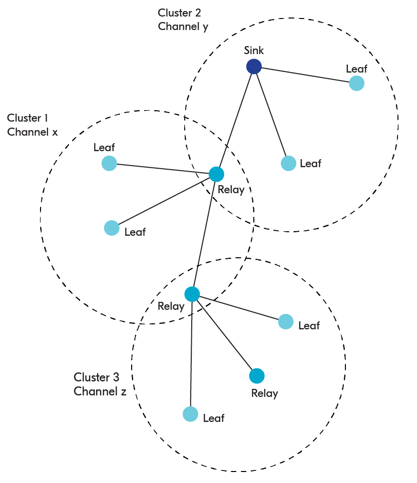 또한 릴레이 노드는 간섭을 최소화하기 위해 주파수 채널을 스캔한다. 이 노드들은 간섭 회피를 최적화하기 위해 다른 클러스터 노드에 채널을 변경하도록 지시하여 고밀도 네트워크에서도 신뢰성과 저지연성을 달성할 수 있다.